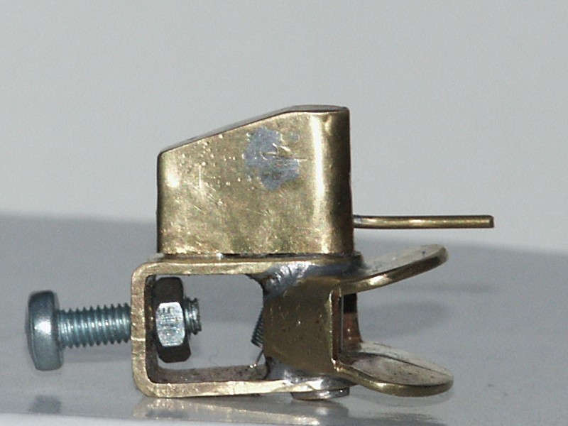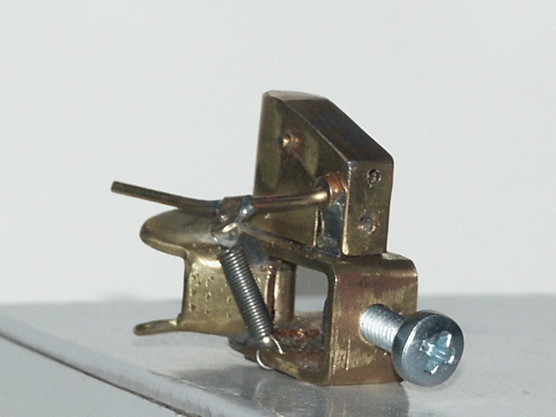 fernbedient wird. Bei dieser Kupplung besteht das “tragende” Teil aus einem U-förmig gebogenem 1 mm Messingblech. Zusammen mit dem angelöteten Kupplungsschild ergibt sich eine sehr biegesteife Einheit. Das Schild der Kupplung ist, anders als in dem Baubericht, aus einer Abwicklung heraus gebogen. Die Bohrung für den Kupplungsbolzen ist relativ weit vorn und so werden, auch ohne bewegliches Schild, Knickwinkel von annähernd 90° erreicht. Ähnlich sehen die Kupplungen von Ringfeder aus, wenn man den Begriff “ähnlich” sehr großzügig auslegt..