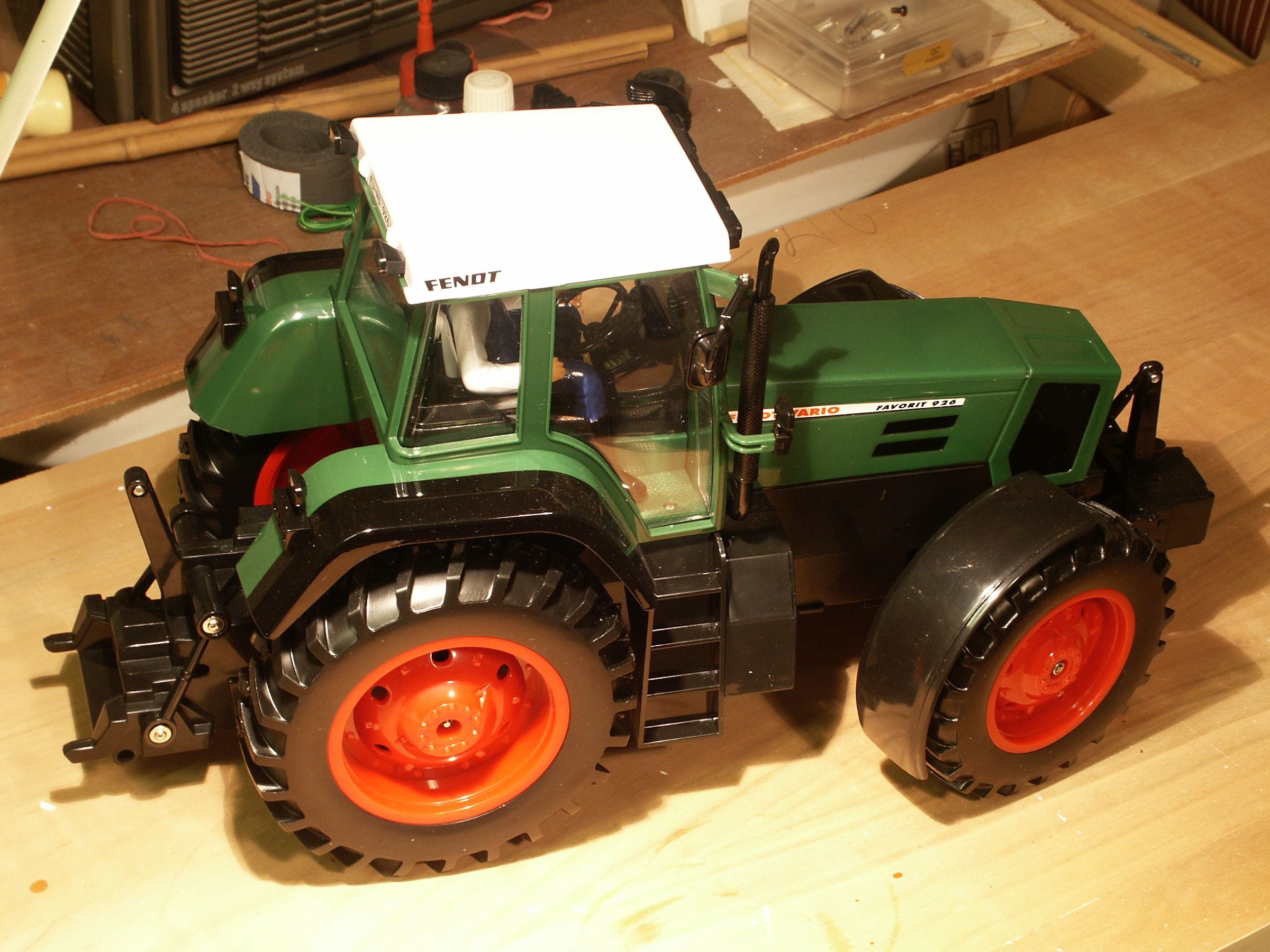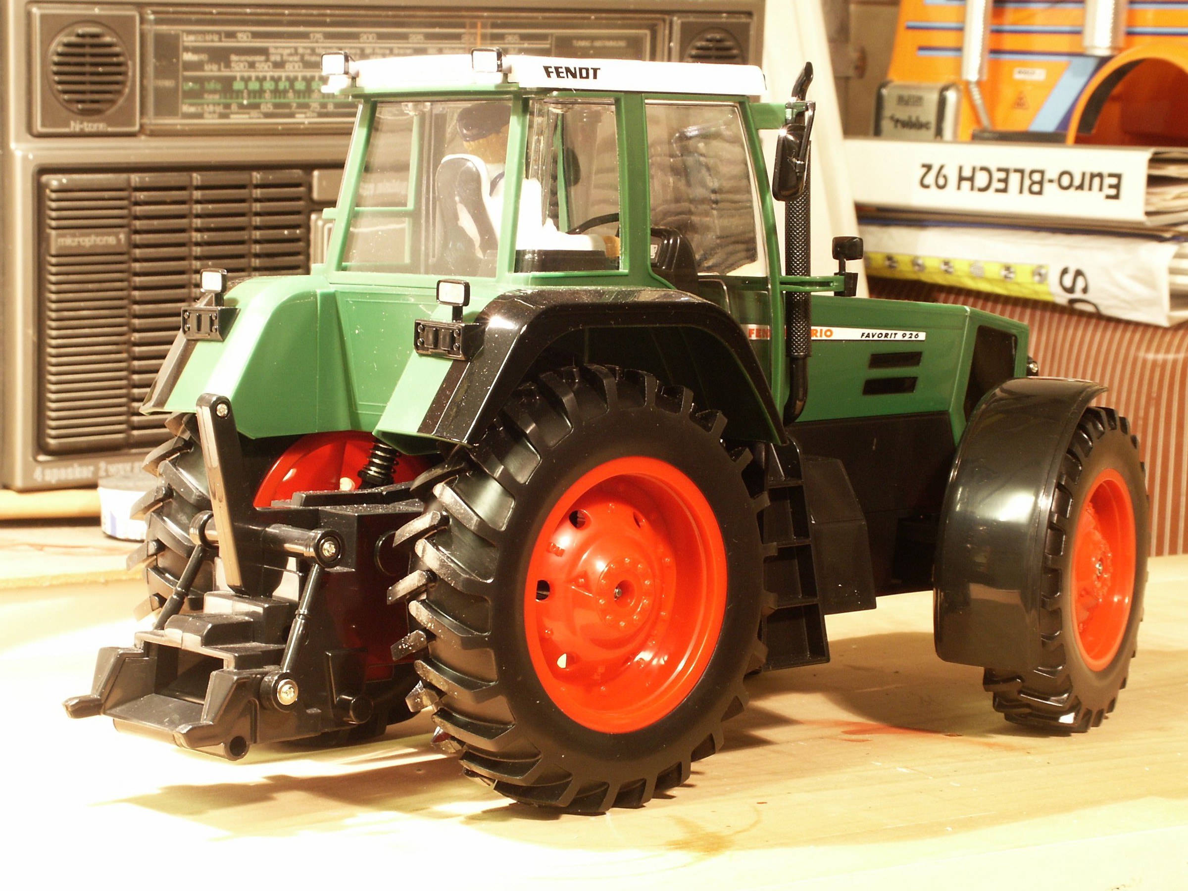 Wie bei unserer Vorstellung schon erwähnt sind wir durch das Sammeln von Trekkern zu dem Truckmodellbau gekommen. Weihnachten 1999 haben wir uns, zusätzlich zu unseren vorhandenen Trekkern, den ferngesteuerten Fendt von Dickie gekauft. Er war auch als Spielzeug für Alexander, Petras Jungen, gedacht. Bereits beim ersten Fahrversuch kam die Ernüchterung. Nur mit Vollgas und Haken schlagend, das konnte es doch nicht sein. Wenn ich da an die kabelgesteuerten Autos aus meiner Kindheit dachte, sie konnten feinfühlig gelenkt werden und die Geschwindigkeit ließ sich auch regeln. Mein 356er Porsche