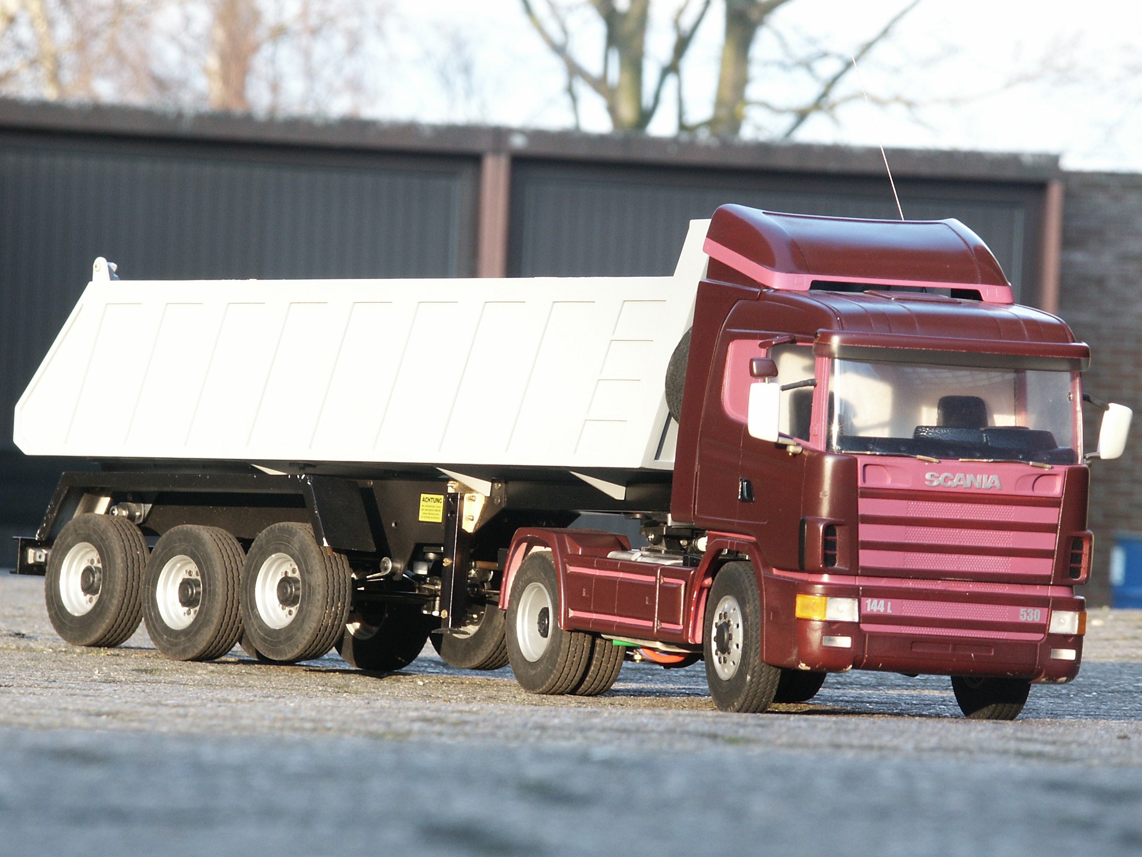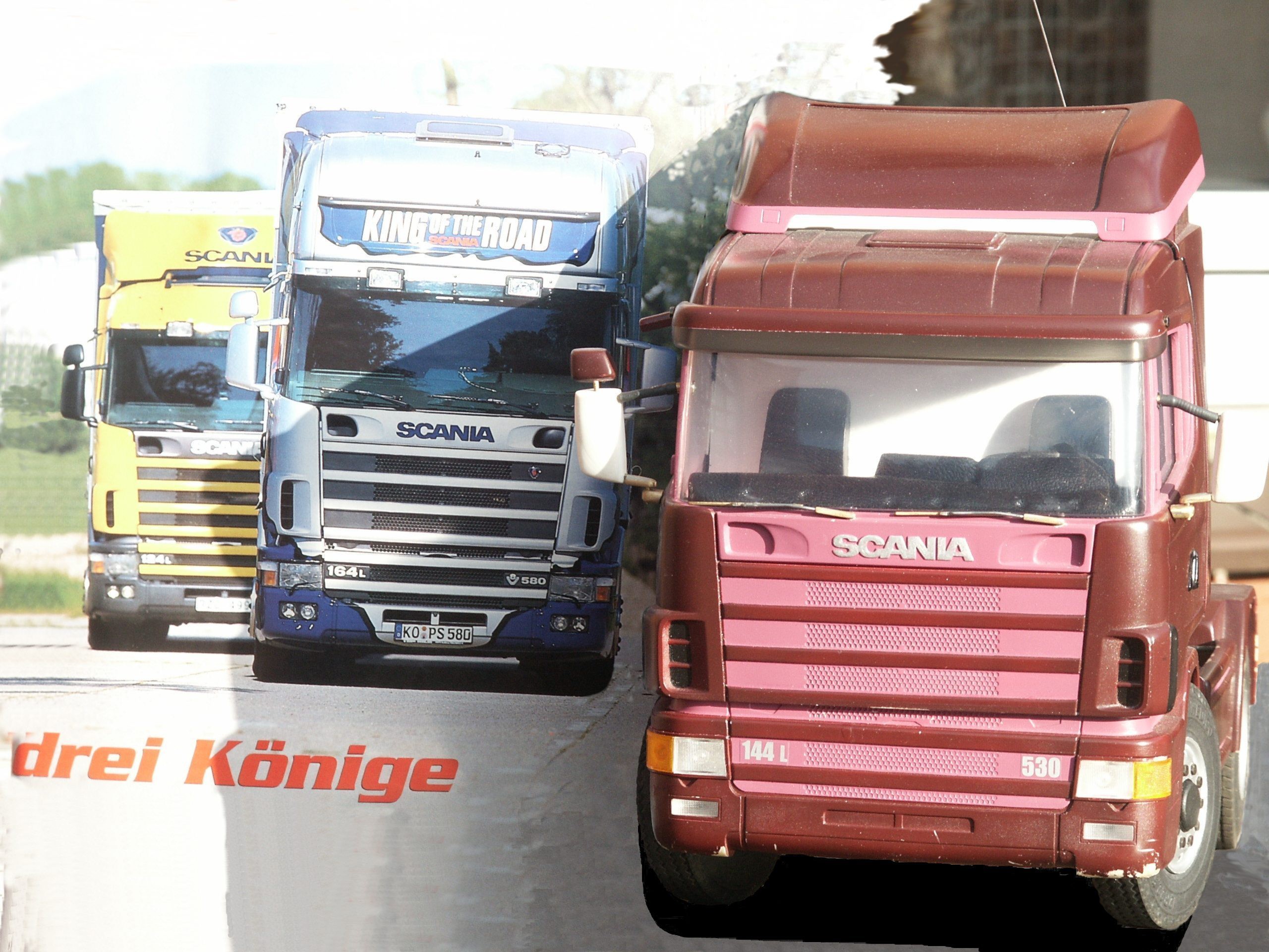 In der Zeitschrift Truck und Details, von der wir uns als angehende 'Profis' alle Ausgaben besorgt hatten, war ein Bericht über einen Scania und einen Muldenauflieger von Robbe erschienen. Nachdem wie schon gesagt, durch den MAN unsere Sucht angestachelt wurde, bestellten wir für Petra den Actros und für mich gab es als Ausgleich den Scania, hä, hä!